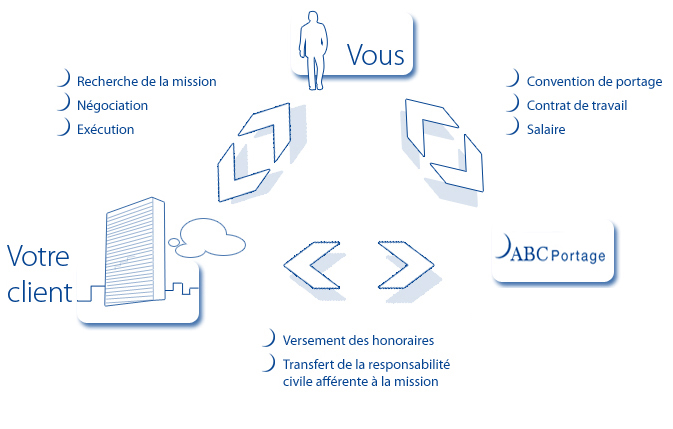 L’idée du portage ? Se reposer totalement sur un prestataire de service qui facturera vos interventions auprès de vos clients, vous permettant ainsi, dans le cadre d’un contrat tripartite (vous, votre client, ABC portage), de toucher un salaire et de bénéficier de l’ensemble des couvertures sociales classiques, et j’insiste sur ce point, que vous soyez en poste ou non.